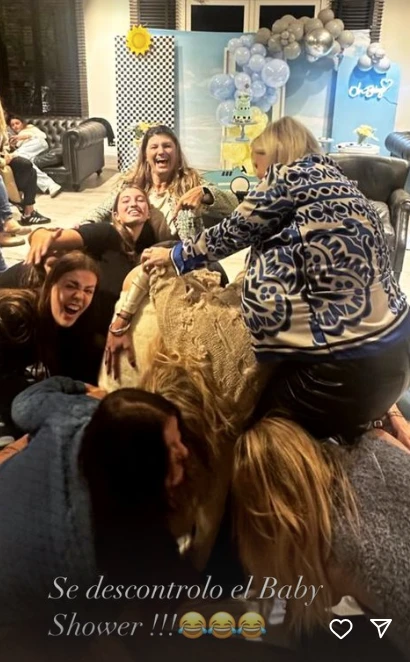 Neumann y sus invitados, en una fiesta minuciosamente organizada desde el comienzo hasta al fin por Gege, hermana de la ex jurado de Los 8 escalones, disfrutaron de juegos temáticos y de posar todas juntas en una postal que simuló que todas las presentes estaban embarazadas.