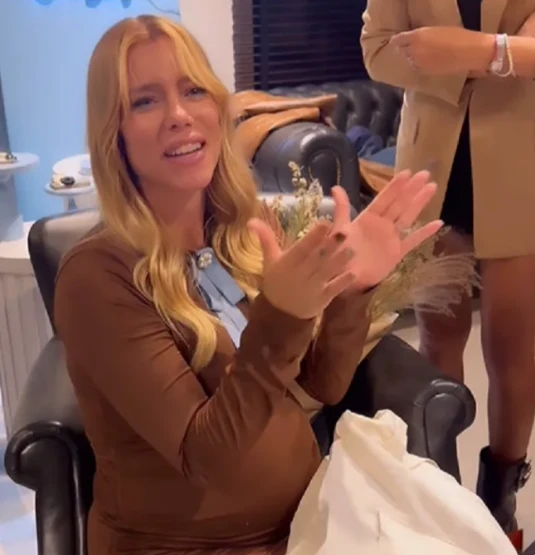 Nicole lució un vestido pegado al cuerpo en color marrón, tal cual la tendencia de moda, que remarcaba su pancita en el último trimestre de la gestación para una tarde donde su gente le expresó todo su cariño viviendo un evento que quedará para el recuerdo.