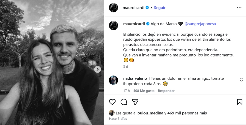 ¿Qué dijo el futbolista? “El silencio los dejó en evidencia, porque cuando se apaga el ruido quedan expuestos los que vivían de él. Sin alimento los parásitos desaparecen solos. Queda claro que no era periodismo, era dependencia. Qué van a inventar mañana me pregunto, los leo atentamente”.