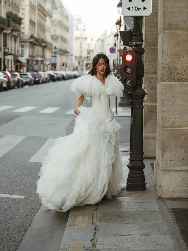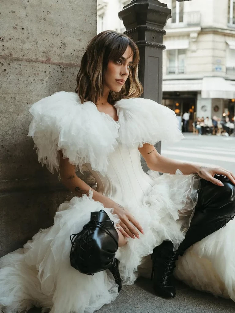 En medio de toda la polémica, Tini Stoessel sorprendió a sus fanáticos con un posteo en sus redes sociales. La cantante se mostró súper sexy en una sesión de fotos que tuvo lugar en las calles de París. Tini lució un vestido blanco con corset bien armado. Las mangas, con volados enormes de tul, le daban un toque dramático y contrastaban con lo ajustado del corset.