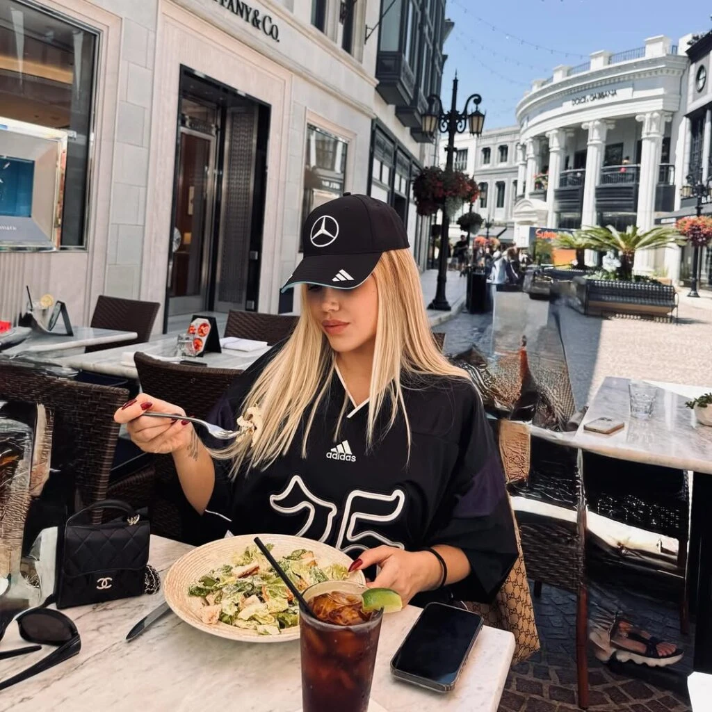 Además, compartió imágenes en restaurantes de Beverly Hills, donde disfrutó de ensaladas, tragos y cafés en entornos sofisticados. Fiel a su costumbre, no dejó afuera los detalles: carteras de Chanel y Gucci, lentes de sol de diseñador y hasta gorras de edición limitada fueron parte de su look cotidiano en esta escapada californiana.