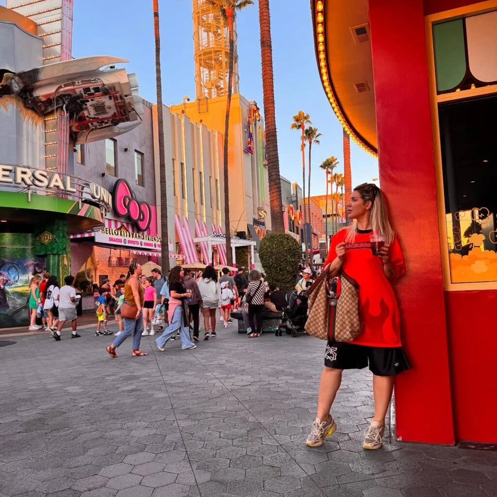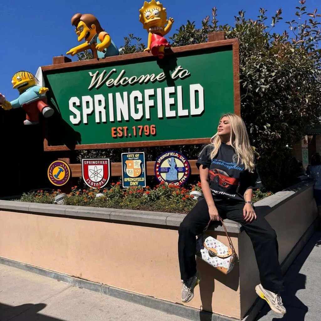Pero no todo fue lujo: Wanda también mostró su costado más lúdico. Publicó fotos en el famoso cartel de Springfield, dentro de los estudios de Universal, posando con personajes de Los Simpson y disfrutando de atracciones temáticas. Allí se la vio más relajada, con looks urbanos y cómodos, ideal para pasar el día.