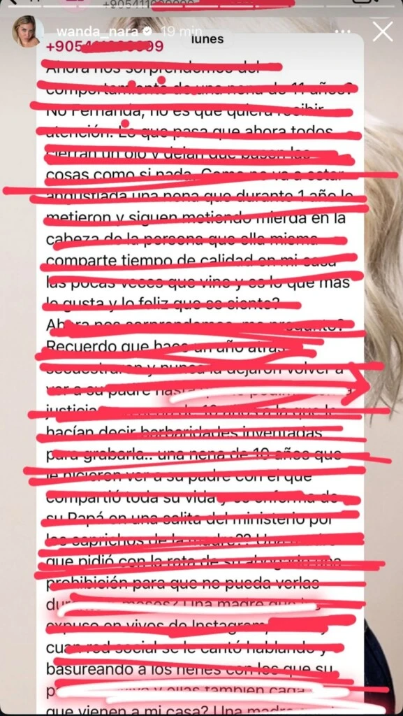 Sin embargo, horas después, Wanda respondió con pruebas. A través de sus redes, compartió capturas de conversaciones de WhatsApp en las que el futbolista le habría escrito, contradiciendo su versión pública. En una de las imágenes, se puede leer un mensaje que dice “¿todo bien?”, mientras que ella responde: “Mis hijas en el colegio en ese horario”.