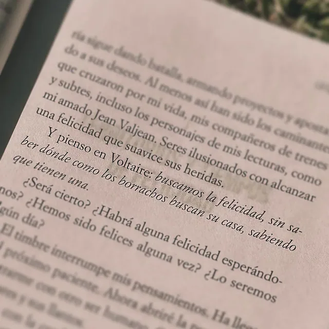 En una de las fotos que la famosa periodista compartió mediante sus redes sociales se ve una frase de un libro que ella resaltó donde se lee: “Y pienso en Voltaire: buscamos la felicidad, sin saber dónde como los borrachos buscan su casa, sabiendo que tienen una”.