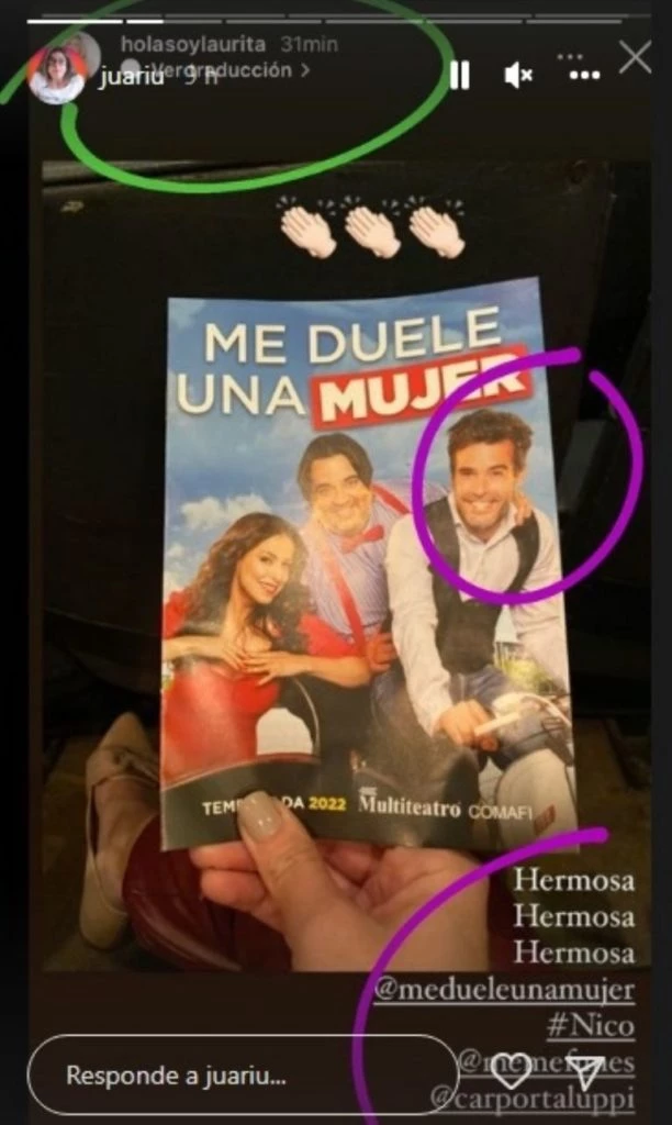 Fernández presenció, y disfrutó, de la pieza Me duele una mujer, que casualmente protagoniza Nicolás Cabré, su ex pareja. Como si fuese poco, la blonda le lanzó muy buena onda al postear en su Instagram una foto del folleto de la representación teatral y escribir: “Hermosa obra”.