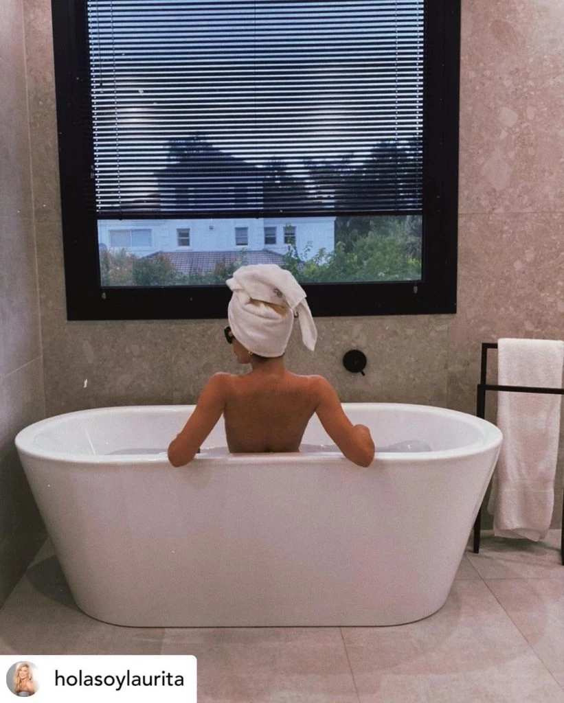 Según se puede saber, la bañera que eligió Laurita: "Tiene como principal característica que es independiente a cualquier pared. Uno de sus principales beneficios es que su instalación suele ser mucho más fácil y practica". En las paredes resalta el estilo mármol. Y su figura es lo que más llama la atención. ¡Una diosa!