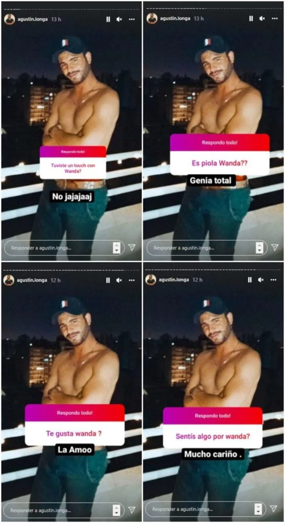 "¿Le das a Wanda?", fue la pregunta que recibió, a lo que él no dudo en responder muy pícaro: "¿Quién no?". Luego confesó que ama a Wanda Nara y que siente muchísimo cariño por ella, la tildó de genia y sencilla. Así, Agustín volvió a encender las alarmas de celos de Mauro Icardi quien está atento a cada movimiento del joven.