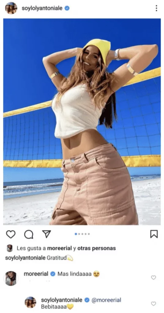 Esta teoría fue impulsada por algunas actitudes de la hija del mediático, More Rial, quien comentó con ternura una foto en la playa que la cordobesa subió a Instagram. “Más linda", le escribió.