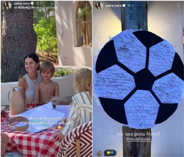En cuanto al catering, Zaira optó por una propuesta casera y descontracturada: facturas, pancitos de queso, tostaditas, picada y una torta sencilla con la que el cumpleañero sopló las seis velitas. Además, madre e hijo compartieron una actividad especial que sumó diversión a la jornada: armaron una piñata con forma de pelota de fútbol, uno de los grandes intereses de Viggo.