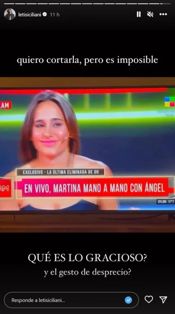 "¿Qué es lo gracioso? ¿Y el gesto de desprecio?", finalizó Leticia. Cabe recordar que hace algunas semanas atrás, Siciliani también apuntó fuerte contra Martina y Tomás por sus dichos homofóbico para poder ingresar al programa más famoso del país.