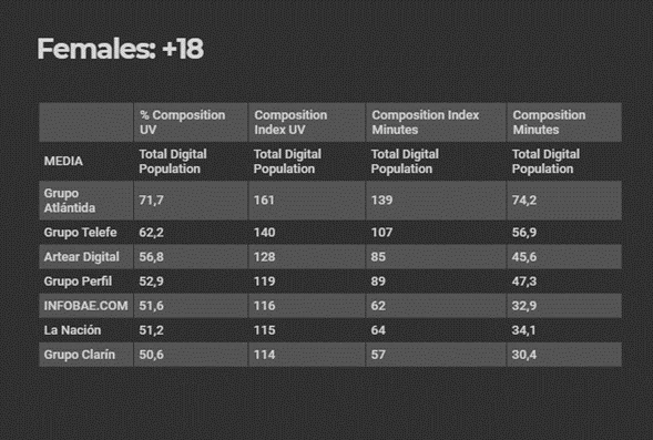 Generando contenido hace más de 100 años, Grupo Atlántida suma una nueva estadística que lo posiciona como un referente entre los medios digitales argentinos: según los datos registrados por Comscore en septiembre 2020, el grupo de medios se encuentra en el top 5 entre aquellos medios afines al mercado entre mujeres mayores de 18 años, gracias a sus audiencias femeninas.