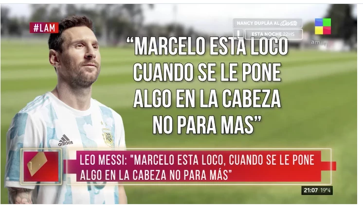 En definitiva, Messi se expresó sobre la propuesta de Tinelli y sin rodeos, ni metáforas, dejó en claro su posición al aseverar: “Marcelo está completamente loco, cuando se le mete algo en la cabeza no para”. Una frase corta y concisa, pero que dice todo.