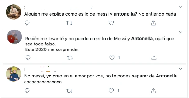“No puedo levantarme y ver que Messi y Antonela se separaron”, “Jodeme que se separaron”, “Si es verdad que se separaron, confirman que es el peor año para la humanidad”, “Espero que salgan a desmentirlo ya”, “Diganme que es mentira por favor”, fueron algunos de los comentarios que se vieron en la red del pajarito.