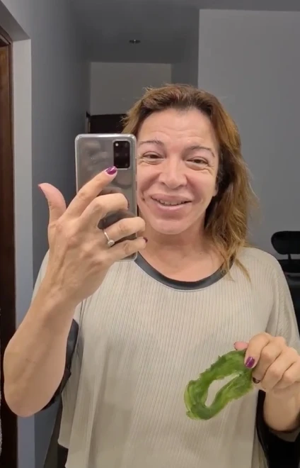 Sonriente ante la cámara, Tagliani comenzó a pasarse la cera verde alrededor de su boca, le dio algunos golpecitos para que se enfríe más rápido y finalmente realizó el tan odiado tirón: “Porque ser mujer nunca fue tan fácil, basta de esos productos que duelen, te hacen daño y no te cuidan la piel. Por eso te propongo, que desde la comodidad de tu casa puedas ser la mujer que siempre soñaste, sin sufrimiento, sin dolor, con alegría…”