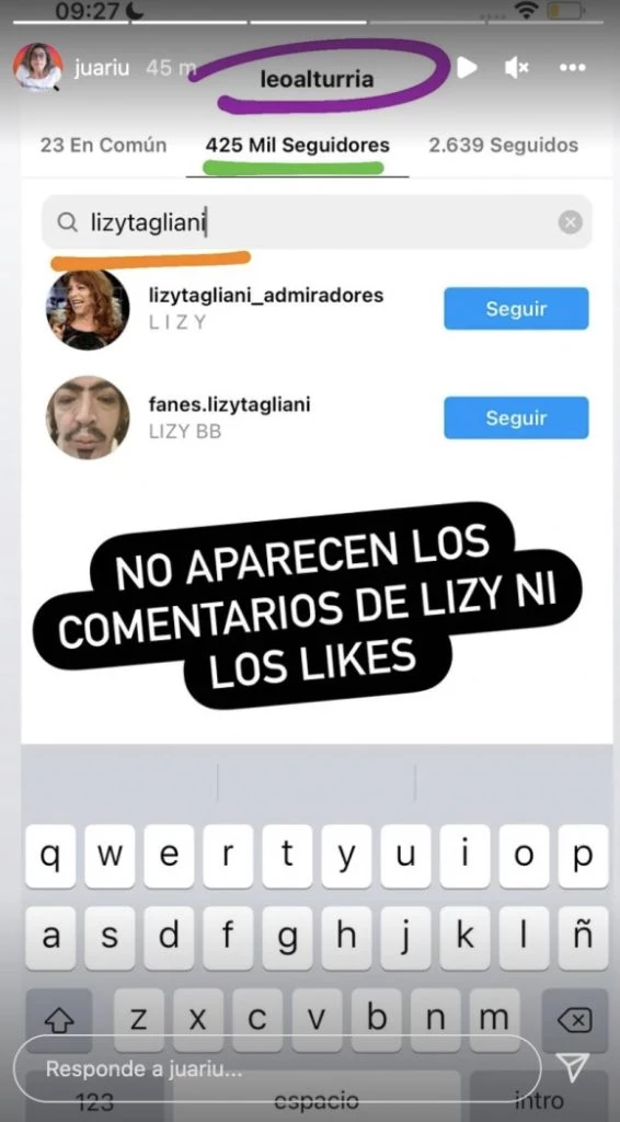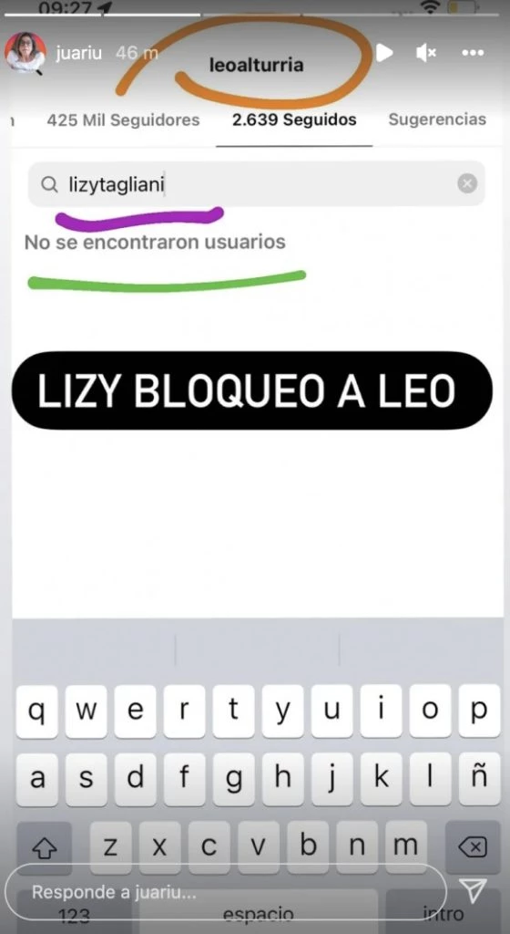 Si bien Lizy Tagliani le envió un video súper emotivo a Leo Alturria diciéndole que era buena persona y ella lo sabia, parece que eso se acabó. Y es que, Juariu descubrió que la capocómica habría bloqueado a su después de todo lo que ocurrió ya que no lo sigue ni tampoco se ven sus likes o comentarios.