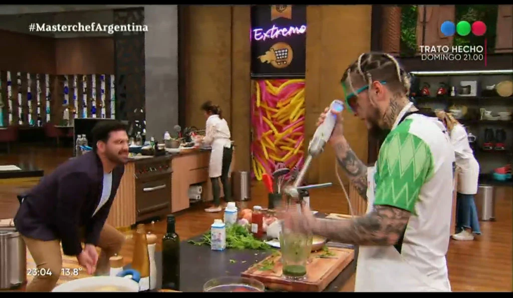 Sin embargo, se vivió un divertido momento en el estudio de Telefé, cuando Damián Betular decidió acercarse a la isla de cocina de Alex Caniggia, quien no había tenido un buen diálogo con Germán Martitegui y había preferido mantener oculta la decisión de su preparación.