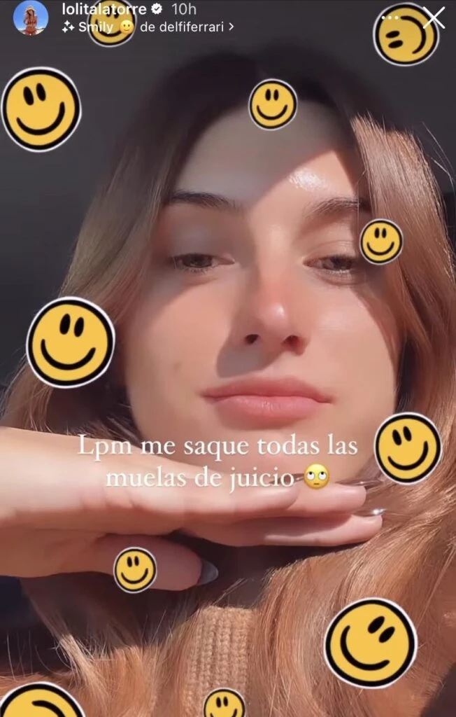 Fue entonces que Lola explicó de qué se trataba esta vez. “LPM me saque todas las muelas de juicio”, escribió la heredera de Yanina y Diego Latorre justificando la inflamación en sus cachetes e intentando aparecer de alguna forma en su red social.