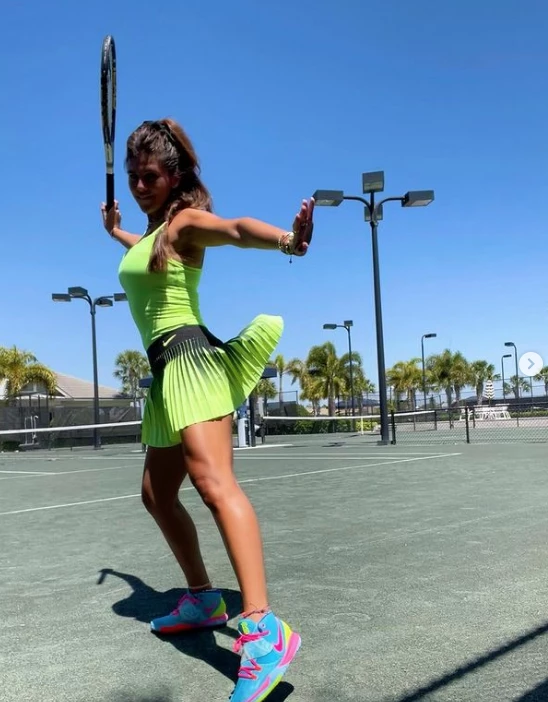 A plena luz del día, con pollerita, zapatillas y raqueta en mano, Antoniale juega con amigas y avanza en sus conocimientos que comparte con sus seguidores en redes sociales. Y fue justamente a través de su cuenta oficial de Instagram donde compartió postales que despertaron comentarios comparativos.