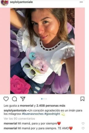 Claro que faltaba una pieza en este rompecabezas, Loly Antoniale. La bellísima cordobesa construyó un lazo afectivo muy fuerte con More, en la época de relación con Jorge Rial. Al tal punto que es más de una publicación de la modelo, la influencer le comentó: “Mi mamá por y para siempre”.