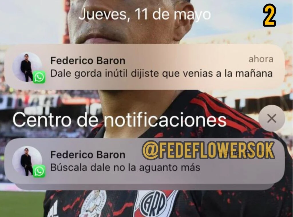 "No no, no entendés vos. Yo voy a trabajar, no voy de joda. Hace de cuenta que me voy a otro país, a Uruguay o España. ¿Qué vas a hacer? ¿Vas a ir a España a buscarme? Es una ridiculez lo que estás diciendo. Yo voy a laburar. Ya te lo avisé. Así que no me jodas con mi trabajo, porque mi trabajo es sagrado", se escucha decir a Federico Barón.