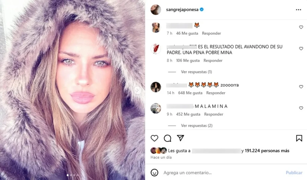 “Soberbia”, “Sobradora”, “Soret…”, “Tendrías que tener un poco de dignidad y dejar que la supuesta persona que amas se vincule tranquila con sus hijas. Cero empatía, dignidad”, "Es el resultado del abandono de su padre. Una pena, pobre mina", "mala mina" o "varios caramelitos faltan en ese envase vacío", fueron algunos de los comentarios.