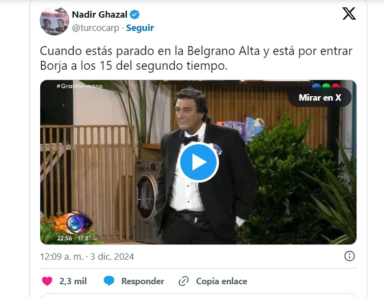 "Cuando estás parado en la Belgrano Alta y está por entrar Borja a los 15 del segundo tiempo", "J Rei sigue esperando en el Sum de la casa de Gran Hermano desde hace casi un año", "Lista para criticas", "Llegó la hora de criticas a todos los participantes", fueron algunos de los mensajes que se impusieron en redes.