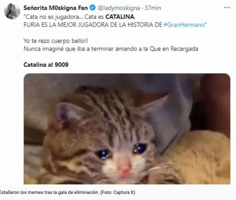 "Cata no es jugadora. Catalina es Catalina. Furia es la mejor jugadora de la historia de Gran Hermano. Yo te rezo cuerpo bello. Nunca imaginé que iba a terminar amando a la Queen recargada", "Se va Furia ahora y después vuelve a entrar con el Golden Ticket", fueron algunos de los memes que se convirtieron en virales.
