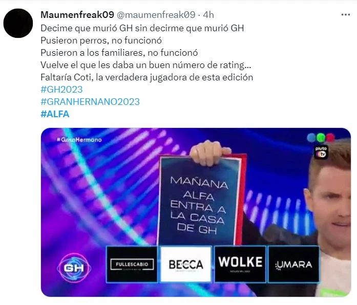 Por otro lado, hubo quienes cuestionaron esta medida y la consideraron un manotazo de ahogado en busca de rating, dado que en las últimas semanas el interés en el programa decayó un poco, a pesar de que la producción metió perritos y luego a los familiares para sumar atractivo.