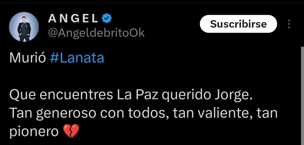 Otro que le dedicó un emotivo mensaje a Jorge fue el conductor Ángel de Brito. "Que encuentres La Paz querido Jorge. Tan generoso con todos, tan valiente, tan pionero", sostuvo. Lo mismo hizo Nacho Viale: "#Lanata QEPD Triste noticia Descansa en paz Jorge. Se va un valiente, un vanguardista y sin dudas un señor periodista. Un gran abrazo a la familia".