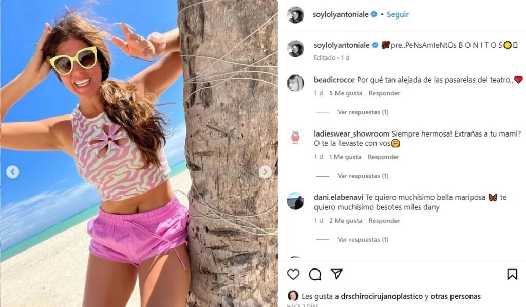 Mediante su cuenta de Instagram, Loly compartió fotos en la playa, pero fueron los pies de foto lo que más llamó la atención: "Siempre pensamientos bonitos. Lo bueno siempre vuelve". Cabe recordar que hace algunos días fue Juan Etchegoyen quien se comunicó con ella.