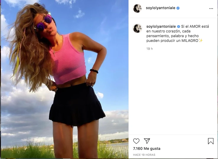 La ex de Rial escribió en Instagram: “Si el amor está en nuestro corazón, cada pensamiento, palabra y hecho pueden producir un milagro”. Con esas palabras, que refieren directamente al sentimiento, Loly generó más especulaciones. ¿Pasará por el altar?