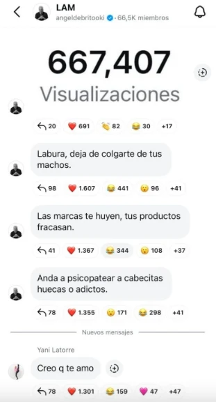 A través de un posteo que hizo en sus redes sociales, la China no sólo desmintió toda la información que había dado el periodista sino que además lo tildó de “mala leche”. Obviamente, ese calificativo no le cayó nada bien a Ángel, que rápidamente recogió el guante y lejos de echarse atrás eligió aumentar la apuesta con una andanada de mensajes muy fuertes.