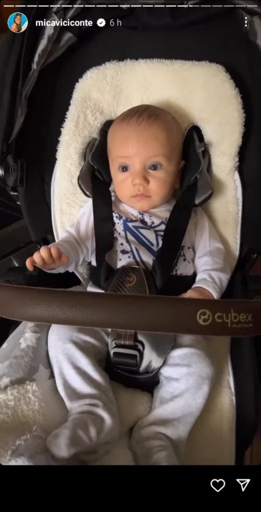 La ex "Combate" compartió tiernos videos de su primogénito, que el 6 de agosto cumplió tres meses de vida, y enterneció a todos. En los posteos se lo puede ver al pequeño muy simpático en su cochecito y luciendo un body blanco de mangas largas con el escudo de Vélez, el club donde jugó su padre y es fanático.