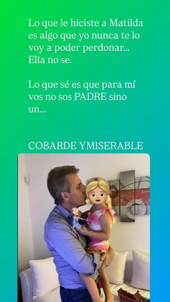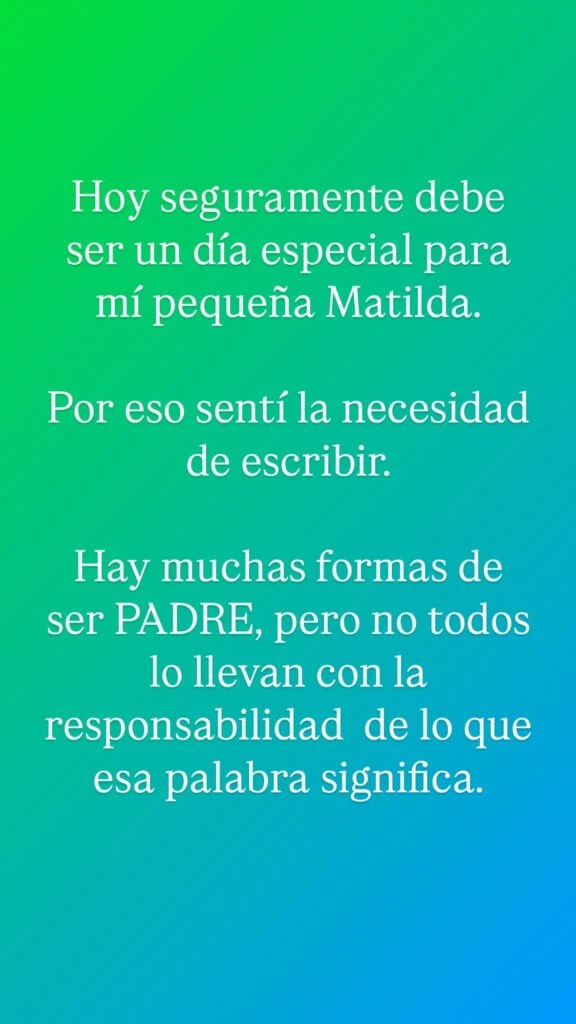 La catarata de historias comenzó con una frase tan clara como desgarradora: “Seguramente debe ser un día especial para mi pequeña Matilda. Por eso sentí la necesidad de escribir.” Y continuó con un texto lapidario hacia Redrado, en el que Luciana pone en duda el rol paterno del economista.