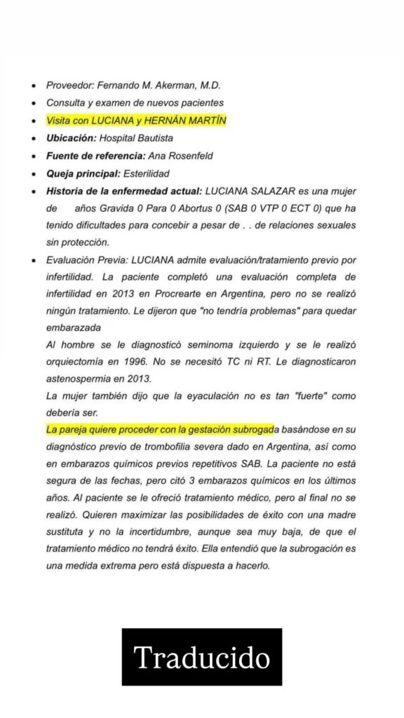 Pero lo más contundente llegó con la publicación de un contrato legal de subrogación, donde se puede leer que ambos, Luciana y Martín, son identificados como los futuros padres de la niña. En el encabezado del documento figura expresamente que la pareja busca “proceder con la subrogación”.