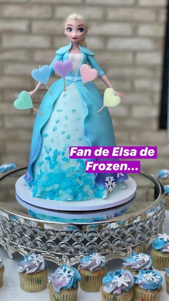 "Fan de Elsa", escribió Luisana junto con la súper torta de Frozen junto a algunos dulces y cupcakes también con la misma temática.