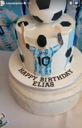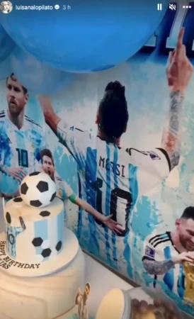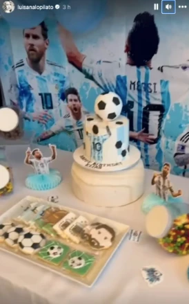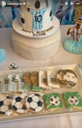 Durante la festividad, Luisana compartió en redes sociales una imagen junto a Michael abrazando a Elías, quien lucía la camiseta de Messi en Inter Miami y llevaba anteojos de la Selección Argentina. La decoración incluyó una mesa adornada con globos celestes y blancos, delicias dulces y fotos de Messi.