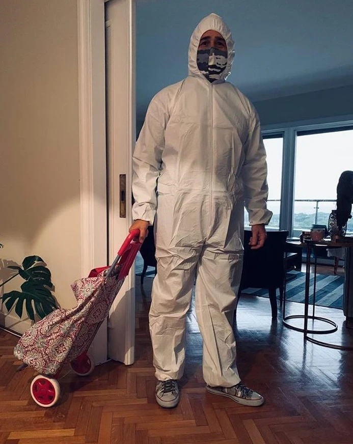 Durante esta cuarentena tanto la conductora como su pareja tienen que salir de sus casas para ir a sus trabajos. Lagarza es dueño de una clínica y, este sábado, subió una postal de cómo sale vestido de su hogar con todas las medidas de precaución posible para evitar contagio.