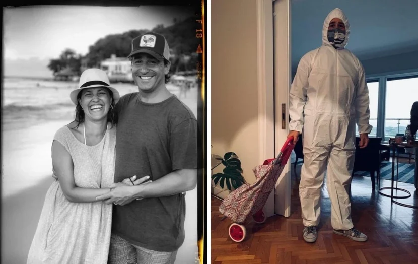 Durante esta cuarentena tanto la conductora como su pareja tienen que salir de sus casas para ir a sus trabajos. Lagarza es dueño de una clínica y, este sábado, subió una postal de cómo sale vestido de su hogar con todas las medidas de precaución posible para evitar contagio.