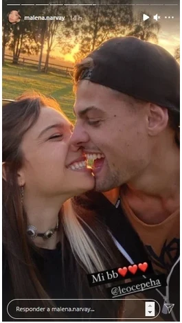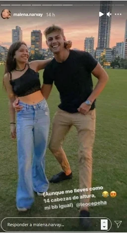 "Aunque me lleves 14 cabezas de altura, sos mi bebé", le escribió Malena Narvay enamorada desde sus historias de Instagram. El DJ reposteó la foto desde su cuenta y la tildó como su “facherita” y “pequeña gigante”.