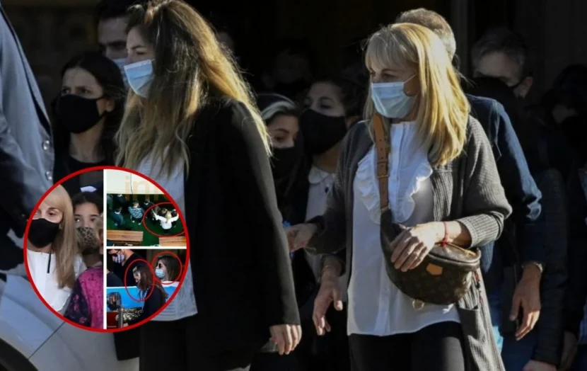 La bandera argentina envolvía el féretro, que fue llevado por amigos y parientes en medio de una profunda emoción. Con lágrimas y llantos un sacerdote encabezó las exequias. Y así, en medio del dolor, Claudia Villafañe su hundió en un profundo y sentido abrazo junto a sus hijas, Dalma y Gianinna.