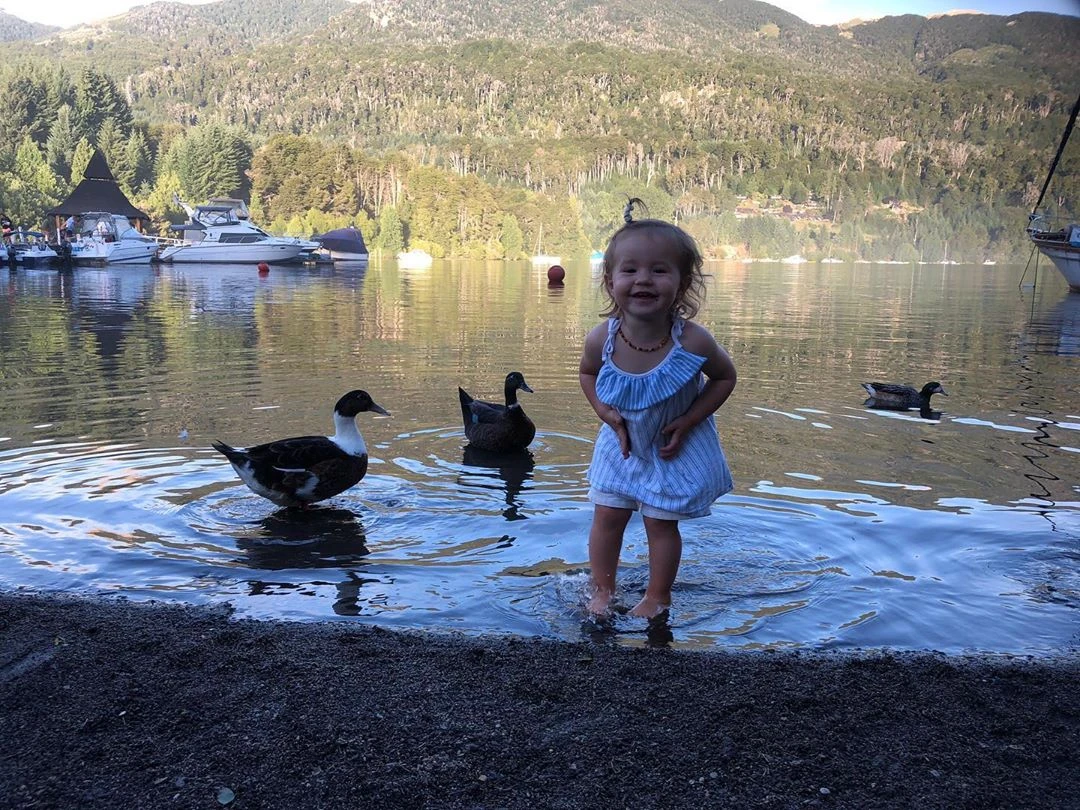 Marcela compartió dos fotos de la gurrumina, una con los papás y la bella pequeña y otra de su hija muy sonriente en un entorno natural, que aclaró se trató de un viaje a la Patagonia.