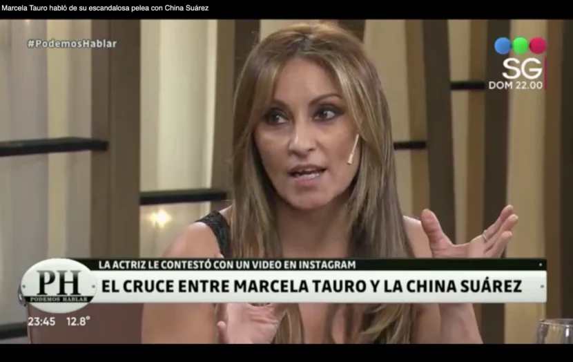 Este sábado, en PH Podemos Hablar, Marcela Tauro contó la pelea que mantiene con la China Suárez, por supuestos dichos que involucran a Benjamín Vicuña y a su ex, Pampita.