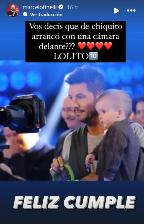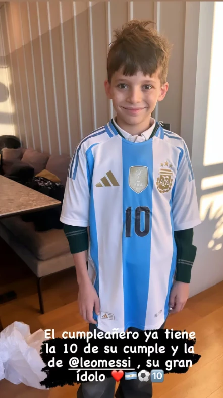 “Feliz cumple, Lolito de mi vida, hijo tan amado. Felices 10 años, mi amor. Hacés que cada día de mi vida sea inmensamente luminoso. Estoy orgulloso de vos. Mi pequeño, mi gigante. Te amo por siempre, por una vida siempre juntos”, escribió Tinelli al pie del clip donde se ve su regalo: una camiseta con el “10” de Leo Messi.