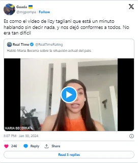 LA CANTANTE FUE COMPARADA CON LIZY TAGLIANI POR NO "IR AL GRANO" CON SU OPINIÓN