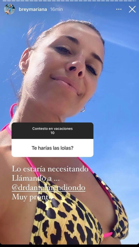 “¿Te harías las lolas?”, le escribió alguien en su cuenta. Pregunta que Brey compartió y sorprendió con su respuesta: “lo estaría necesitando. Llamando a @drdanielmendiondo. Muy pronto…” . ¿Será que la periodista está planeando operarse tras su regreso al país? Al menos, todo indicaría que ganas tiene… y médico también.