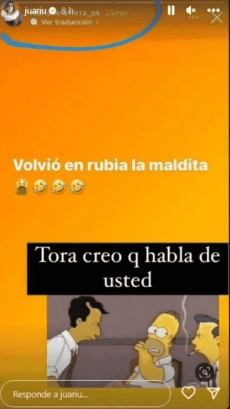 "Tora, creo que habla de usted", escribió luego Juariu, al compartir una captura de la publicación de Mirra. Y luego explicó para los más jóvenes en la sala que eran muy chiquitos en 2007.