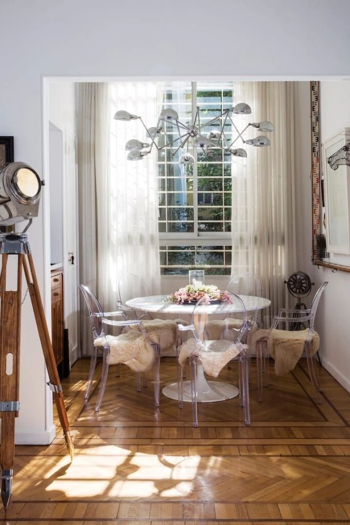 La decoración del departamento tiene mucho del Mercado de las Pulgas de Dorrego, pero también se caracteriza por su diseño y estilo modernos, con muebles de Philippe Starck, inspirados en el barroco de Luis XVI. Asimismo, los recuerdos de su vida se pueden apreciar en cada rincón de su casa.