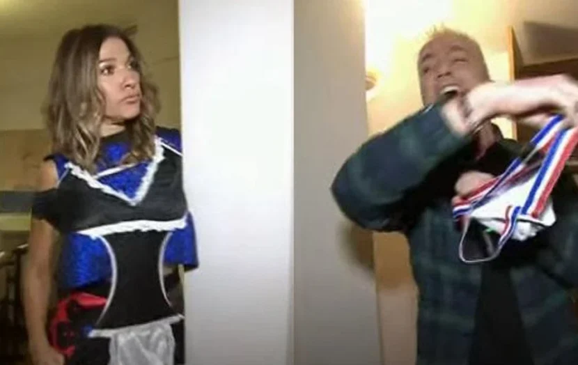 En medio del raid por todos los recovecos de la inmensa, y lujosa, propiedad de la actriz y Ova, el papá de Mirko se topó son situaciones desopilantes, como es un sello en su trayectoria en la pantalla chica. Pero, en una de esas inspecciones por un cuarto halló unas prendas hot, por un lado un disfraz de mucamita y por otro un slip muy particular, con tiras y muy diminuto.