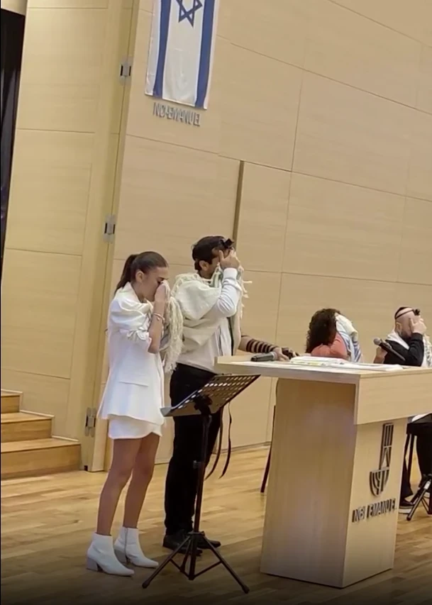 Familiares y amigos participaron del ritual, que mostró a los tres protagonistas madre, padre e hija unidos en un ambiente de profundo respeto. El Bat Mitzvá es un rito que tiene un profundo significado dentro de la comunidad judía, ya que representa la responsabilidad religiosa de la joven y su integración plena a la vida comunitaria.